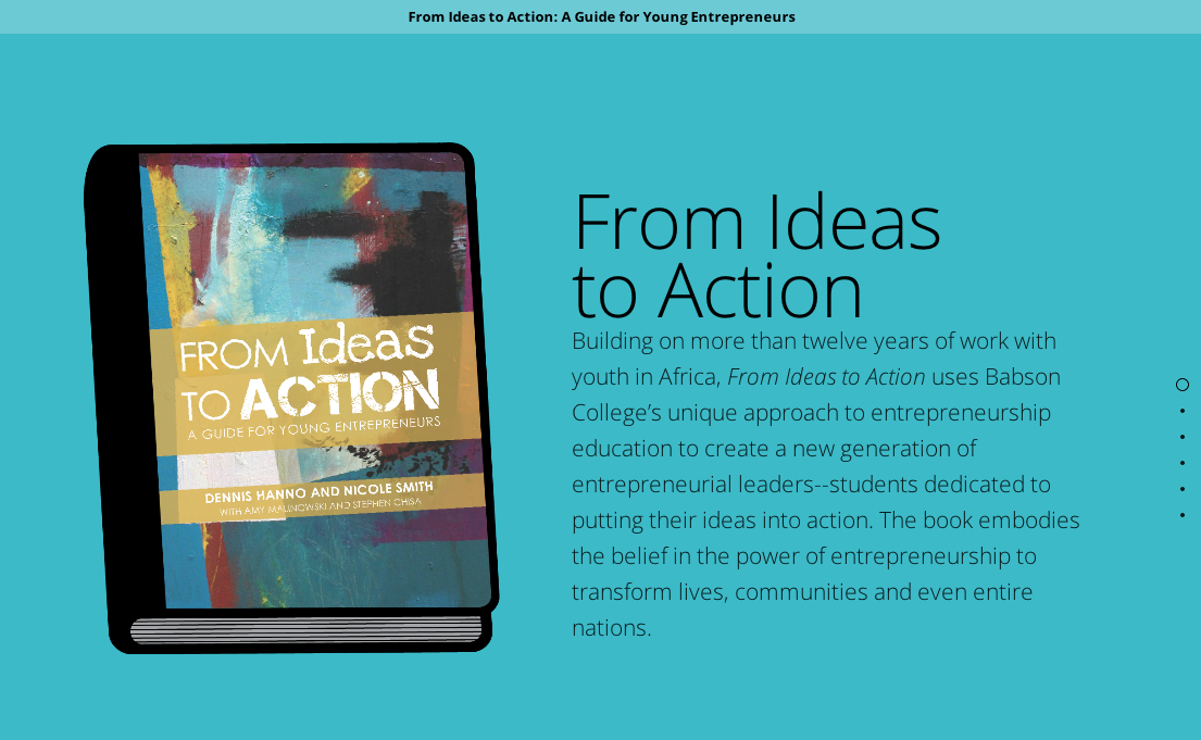 From Ideas to Action is a workbook and road map for moving an idea to action and is specifically designed for the young entrepreneur. The book is full of guidance, practical exercises, and opportunities for reflection and iteration that can be used to help youth pursue their passion as they create an action plan and pitch for their business idea.